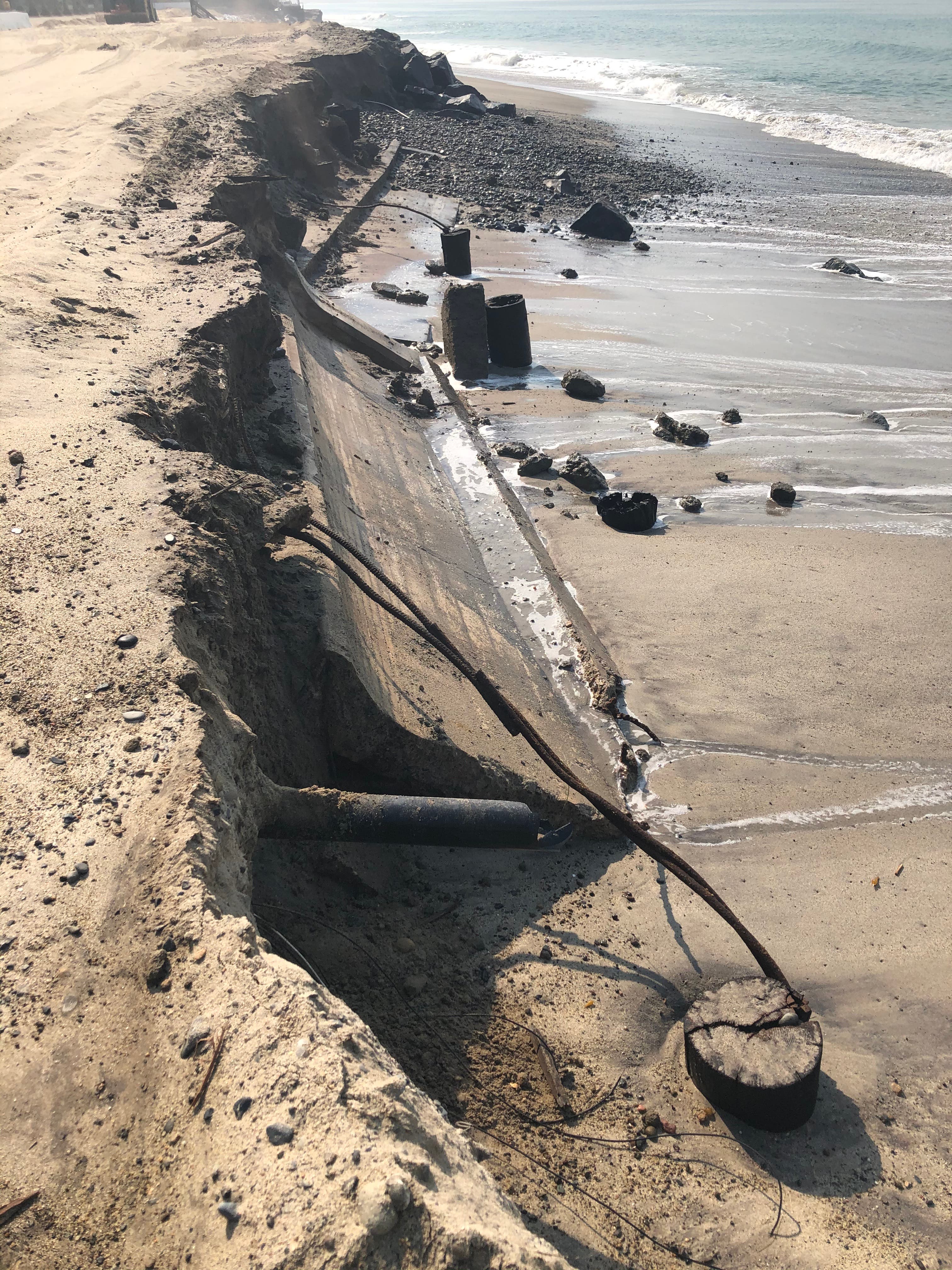 Of interest to history buffs is that the latest high surf event exposed some of the old sea wall and foundations of the Capistrano Beach Club that graced this stretch back in the 1920s. Chunks of concrete and wooden footings from the beautiful boardwalk ripped from its moorings 2 years ago are similarly exposed and reburied depending on surf patterns. Park Rangers scour the beach daily to remove hazards and keep the area safe for swimmers, and urge beachgoers to alert authorities if they encounter any safety threats.