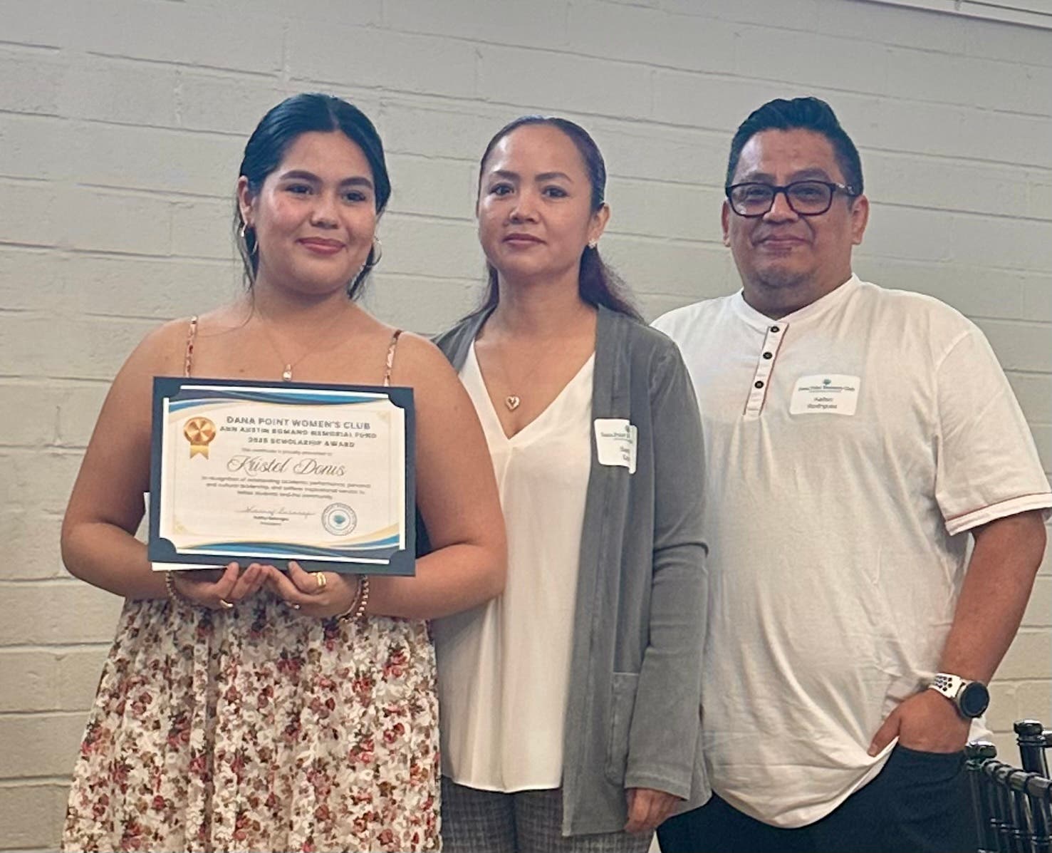 The sixth award is the first annual Ann Austin Romano Memorial Scholarship, which will be offered in each of the next 10 years to a female graduate who resides in Capistrano Beach. DPWC Board member, Toni Nelson, who established the memorial fund in honor of her neighbor and friend, Ann Romano, a strong advocate for “Capo” Beach who passed away last year. “I was thrilled to receive four applications from very worthy candidates who live in our small community. Kristel stood out because of her strong academics, devotion to promoting Latina culture and her support of AVID students at San Clemente High School, and I think Ann would be very pleased that she received the inaugural award in her honor”, said Nelson.