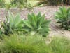 The grayish greens of rosemary, acacia and olive trees are common to these gardens imparting an almost silvery hue to the foliage. Two stunning succulents used in the landscape are Agave attenuata ‘Raea’s Gold’ and torch aloe. The sculptural thick leaves of these plants act as a foil to many of the smaller leafed plants in the design.