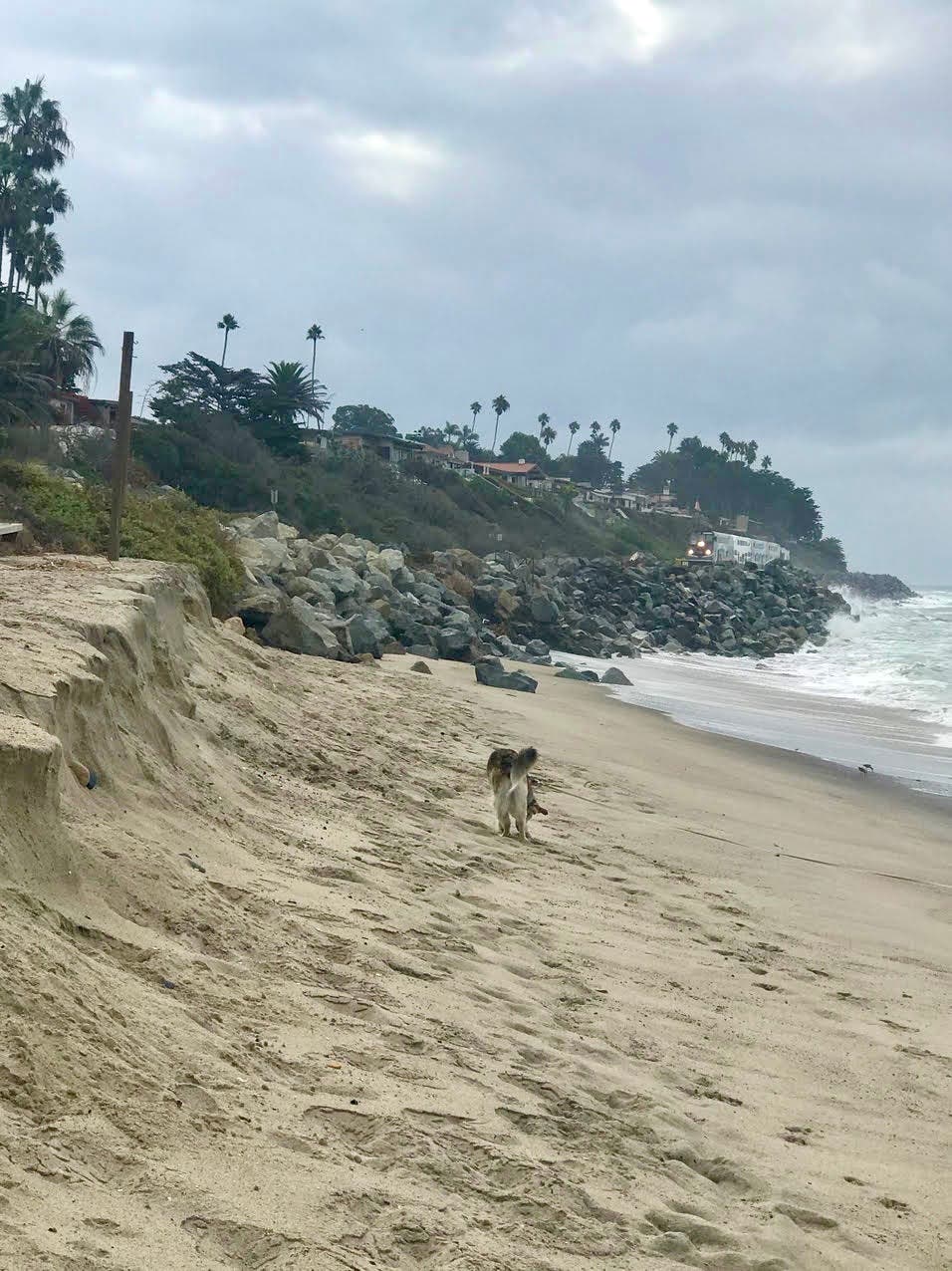 The CCC seems to hold little sway over the railroad, which continues to hard armor and widen the revetment as the beach relentlessly shrinks. San Clemente resident, Susie Whitelaw noted, "Five years ago, you came out of the tunnel, walked up 10 feet of berm to look out over 100 feet of dry sand. Now it’s two feet lower and filled with riprap. Our family had a picnic on Labor Day, on the beach directly in front of the dog in this photo - except a few short weeks ago it was about 50 feet wide and about 10 feet higher. Heartbreaking”.