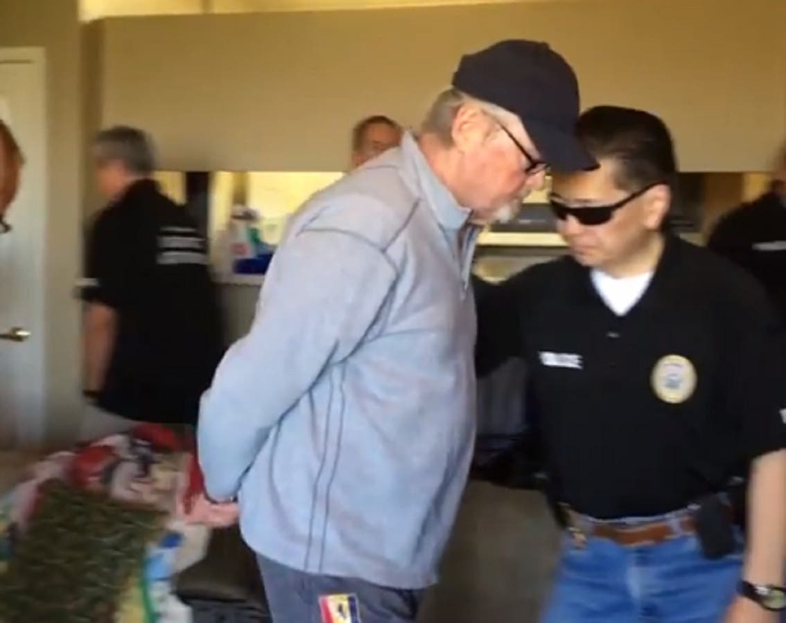 Photo, OCDA Youtube image of the arrest of William Marion "James" Carter, from March 16, 201