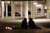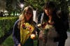 Candles and flowers were placed near the structure's entrance and on nearby sidewalks. One student sang and CUSD President Gary Pritchard was on hand to help comfort students.