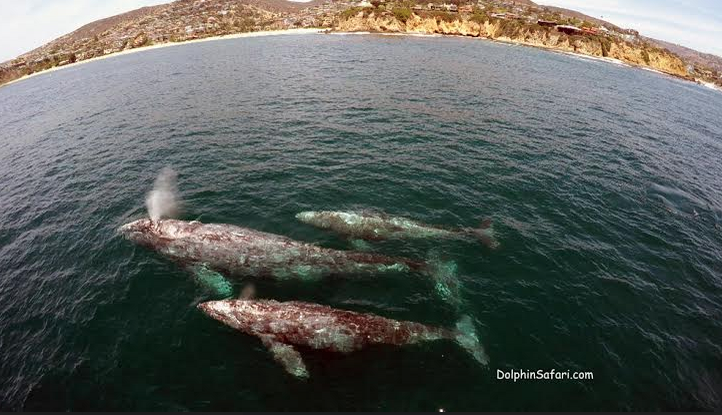 “This year is our 20th year owning a whale watching business, and I have never heard of anyone even seeing a gray whale with two calves, never mind filming it,” he said. “One calf was in the baby position next to the Mom on the right and one in baby position, head next to pectoral flipper on the left. They all appeared normal sized and appeared to be swimming normally like one big, happy, healthy family! This was fantastic, since they still had thousands of miles to travel to their feeding grounds in arctic.”