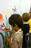 About 700 students who took part in the event at school gymnasium had an opportunity to add a stroke of artistic genius to the life-size blue canvas.