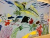 Wyland added his own mark as he drew on the canvas and then painted a large green sea turtle he called Maddie. The students went wild when he named the turtle, clapping and chanting Maddie.
