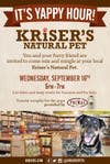 Yappy Hour at Kriser's Natural Pet Wed., Sept. 16 5 to 7 pm 23894 Aliso Creek Road (next to Whole Foods) Laguna Niguel 92677 949-360-0145