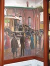 The Kinsella Library’s foyer retains the four murals the Copleys commissioned from San Diego County painter Richard Gabriel Chase to commemorate scenes from Abraham Lincoln’s life. The Copleys recovered the entry’s brick flooring from the now-demolished railroad platform in Springfield, Ill., from which Lincoln left for Washington to take the presidential oath of office in 1861. James Copley had owned a Springfield newspaper.