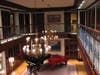 After purchasing the building for a reported $3.75 million, Kinsella engaged architect Trip Bennett, AIA, and Grunow Construction to remodel and update the building, bringing in more light by adding two French doors and windows that matched the existing structure. Modern wiring, WiFi, CATV 5 and energy-efficient lighting completed the library’s transformation into attractive, functional office space with inviting, museum-quality exhibition galleries, yet preserved the building’s character.