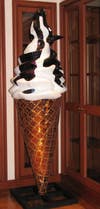 Scattered throughout the library are whimsical mosaic works by local pop artist Jean Wells Hamerslag. Prominent in the galleried main reading room is Hamerslag’s eye-candy sculpture “Mini Moosaic,” an ice cream cone with a Jersey cow sundae “topping,” as well as her “largest paint brush” mosaic.