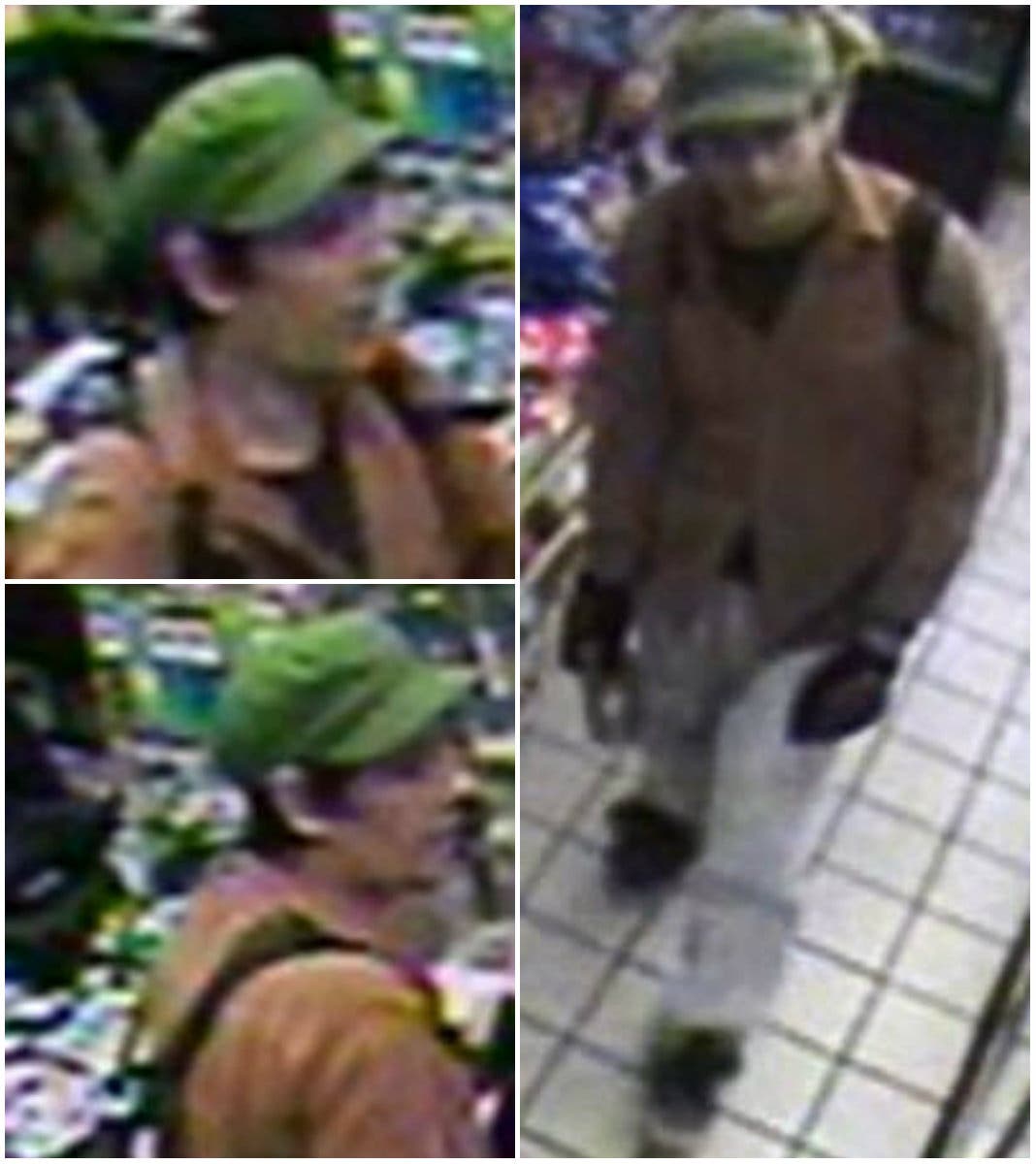 Police obtained surveillance footage of the suspect from a convenience store near one of the scenes. In the video footage, the dark-haired suspect, who appears to be in his 20s or 30s, is carrying a backpack and wearing dark gloves, light-colored pants, a brown long-sleeve shirt or jacket over a dark undershirt and a green short-billed Greek fisherman-style cap. However, Nisleit said he may have changed his clothing or appearance.
