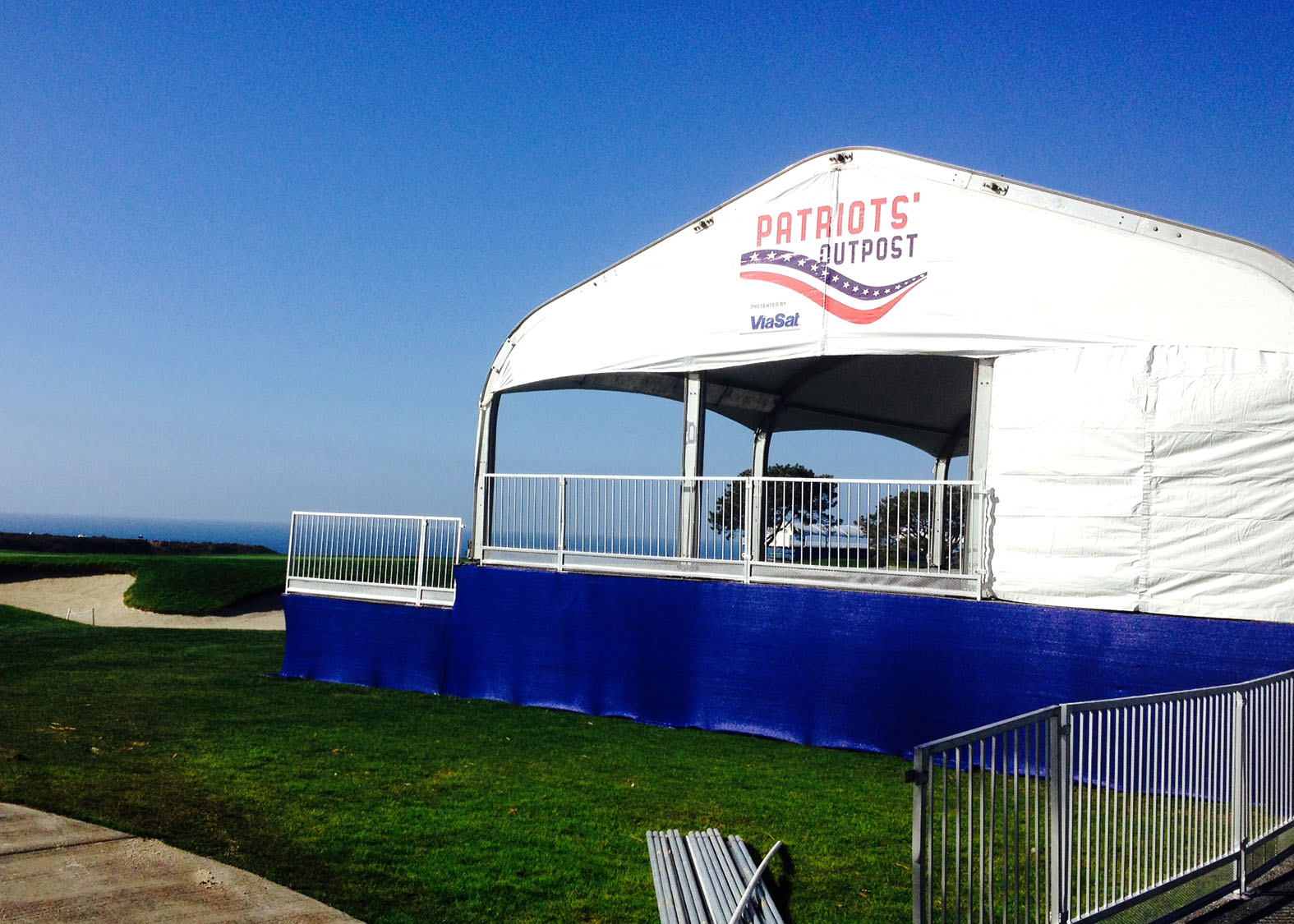 The Patriots’ Outpost is a private chalet both dedicated to and exclusively available for Active Duty military and their dependents. The Outpost is located on the 14th hole at Torrey Pines Golf Course with beautiful views of the Pacific Ocean. Local heroes are provided complimentary food and beverage as well as a great vantage point to watch the action unfold on one of the closing holes of the tournament.