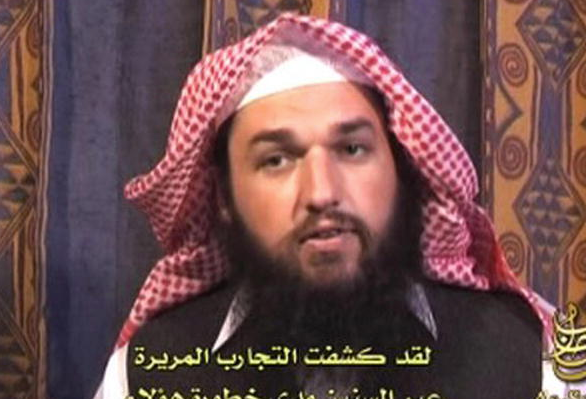 An image grab taken from a video produced by Al-Qaeda’s media wing As-Sahab and posted on the Internet in August 2007 shows Adam Gadahn, a US convert to Islam who was indicted for treason in the United States, making a statement at an undisclosed time and place. CREDIT: AFP/Getty Images