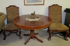 47" solid wood round dining table with 4 high back tapestry chairs. Almost new! $300.00 951-440-6444