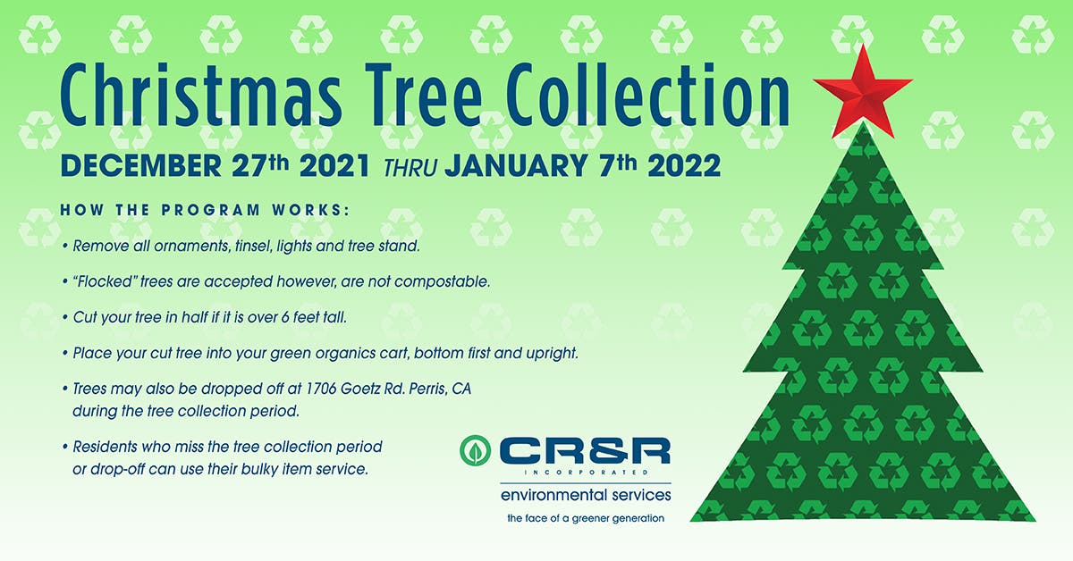 According to the city's website, CR&R Inc., the City's franchised waste hauler, provides a Christmas tree recycling program for the residents of Lake Elsinore.