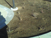 Another observation is apparently the way the area was prepped was to spray an herbicide, yuck, and then rototiller everything under. The problem with this is the time between spraying and tilling was to short a time, as the stolons from the grass are still alive and growing quite well, having removed a fair amount of this matter. That along with having to uncover 90% of the sprinkler heads that were buried under a couple of inches of dirt, straightening out several that were leaning 10-15 degrees, pulling dirt away from the borders so when the bark is laid there is something to contain it, things are progressing.