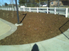 First day I picked an area next to one of the entrances which is planted with Red Yucca (Hesperaloe parviflora), there are 35 plants in this area and as you can see from the picture , 6 inches from the sidewalk for a plant that will spread 2-4 feet or 3-5 feet depending on the source of information just don’t cut it because they will have to cut it back along the sidewalk as it spreads, making them horticultural butchers (sorry about the picture, not really a camera guy). Other than this plant in this area there will be nothing but bark, boring. They could have interspersed some Festuca glauca (Blue Fescue) to break up the monotony.