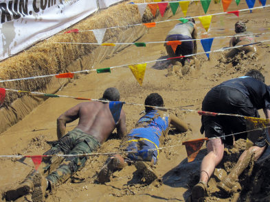 Runners will crawl through muddy tunnels, scale muddy walls and trudge across muddy waterways during the competition.