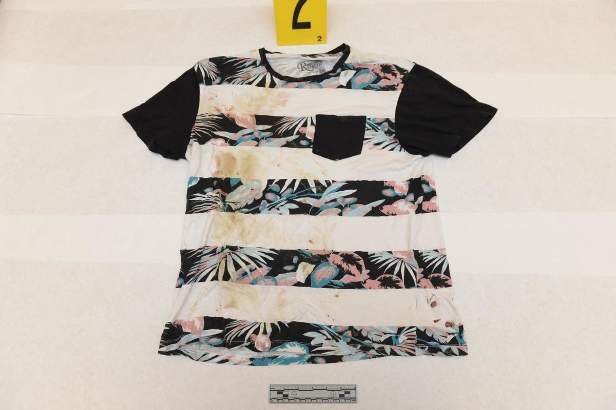 "The t-shirt has a distinctive pattern in which investigators believe someone in the community may recognize as belonging to someone they know," the Corona Police Department said in a news release accompanying the photo.