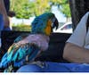 Sean Halbert and Dana Skelton operate Redlands-based Olive Branch Parrot Rescue. They were at the park Sunday with a few of their birds. The husband-and-wife team work and go to school, and currently oversee care for 11 big birds via a foster program they spearhead.