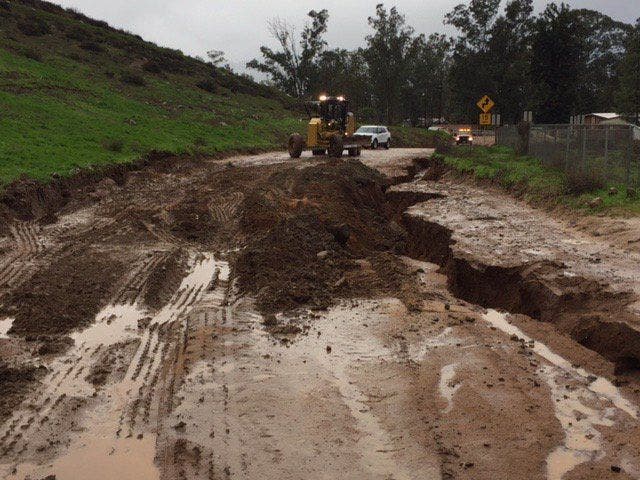 RIVERSIDE COUNTY, CA – PHOTO: Road repairs underway today on El Toro Rd near Lake Elsinore.