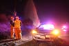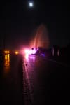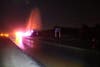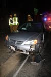 The chase ended at the intersection of Murrieta Road at Bundy Canyon Road/Scott Road shortly before midnight after the suspect crashed the Honda Civic he was driving into the fire hydrant and sheared it off, causing flooding and a lane closure on Bundy Canyon. Officials from Eastern Municipal Water District were called to the scene.