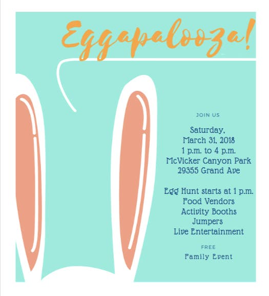 From the City of Lake Elsinore: Bring your kids out to enjoy live entertainment, jumpers, food vendors, activity booths and over 8,000 prize-filled eggs.