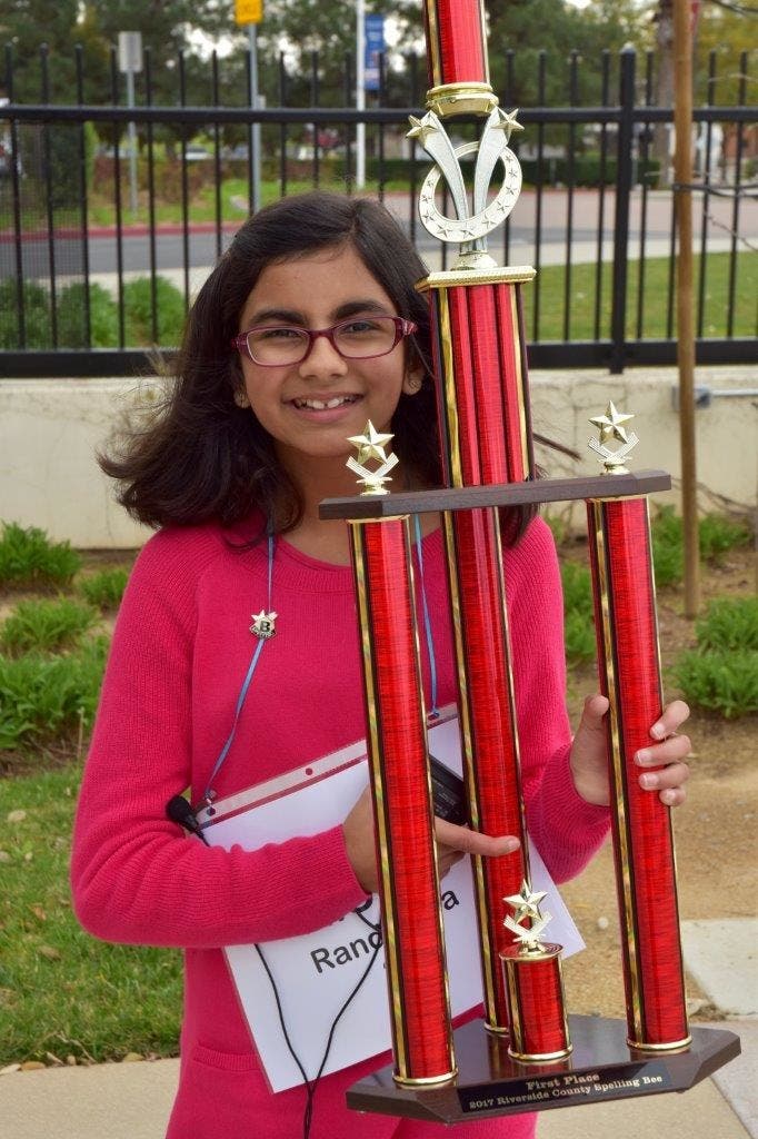 The champion speller for the last two years -- Aisha Randhawa from Auburndale Intermediate School in the Corona-Norco Unified School District -- will be back for another go at the championship title. A win for Aisha next week would be unprecedented, making her the first three-time champ speller in the four-decade history of the Riverside County Spelling Bee.