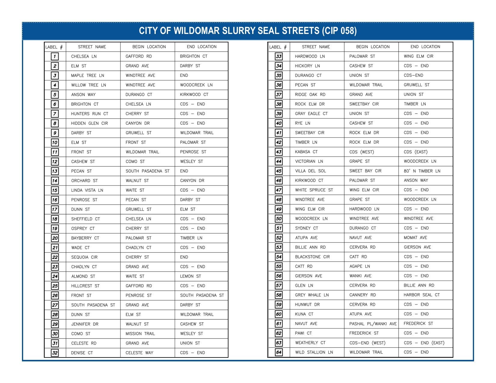 See the construction map and the list of Wildomar streets scheduled for slurry seal: