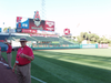 The score was tied 1-1 against the Seattle Mariners. Angels had a man on first and third; #21 Gutierrez was in right field. We got the buzz from other fans as to what was happening.