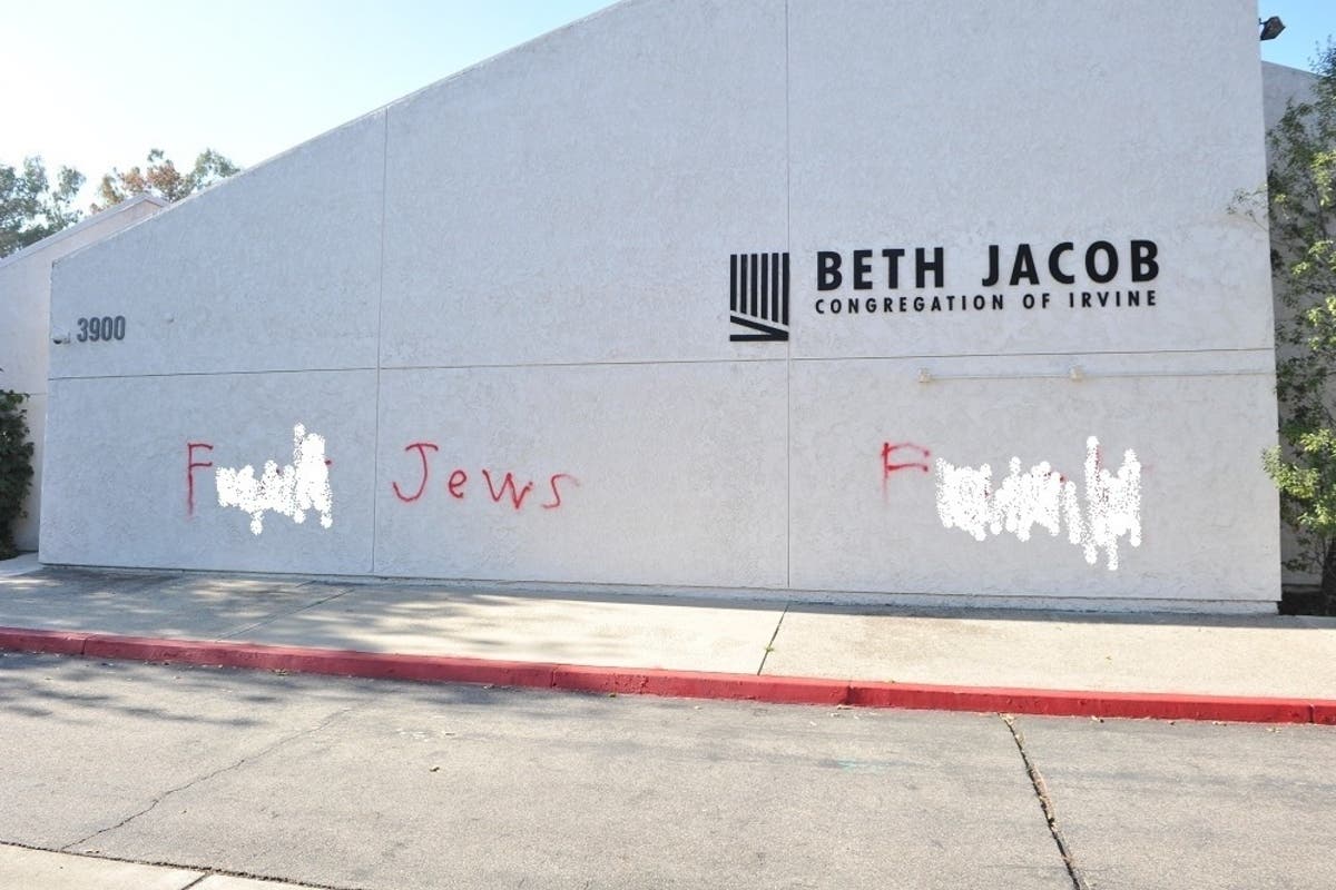 IRVINE, CA — The slash of bright red graffiti on the exterior walls of Irvine's Beth Jacob Synagogue was a startling reminder of the shooting in Pittsburgh that claimed the lives of many in late October. Now, people from across the world are looking to show their solidarity with the Jewish community through financial, spiritual and physical support.