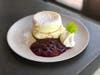 Souffle pancake options include: Original, whipped butter and syrup, $10; Berry Compote, with house whipped cream, $12; and Strawberry Cream, with fresh strawberries, $12.