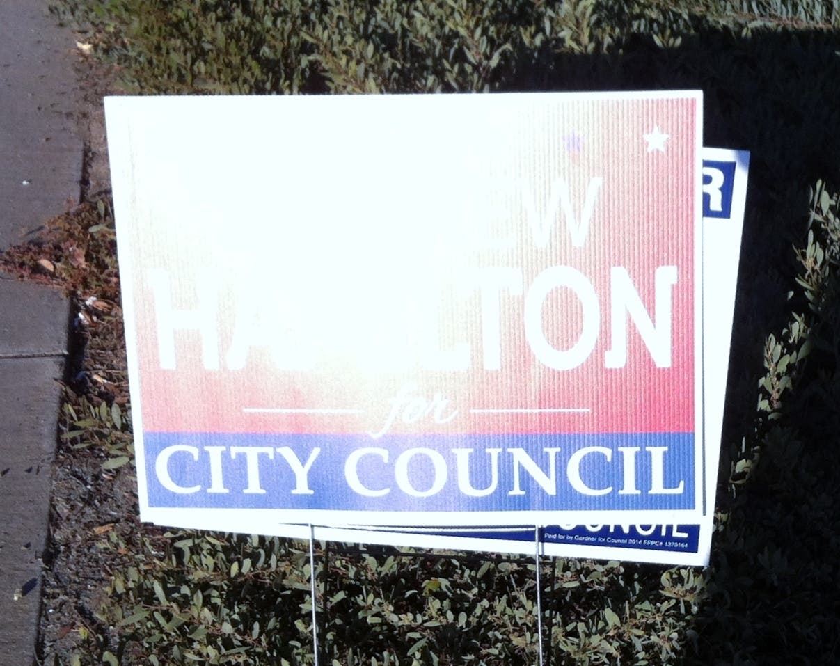 As I said on several occasions, the amount of money, time, and energy going into the Sign Wars is counter-productive. I wish that Hamilton, McCullough, and Voigts had agreed to the voluntary ban on signs, but they didn’t, and hence we are having these problems now. Perhaps a future Council will consider banning them on public streets and allowing them on private homes.