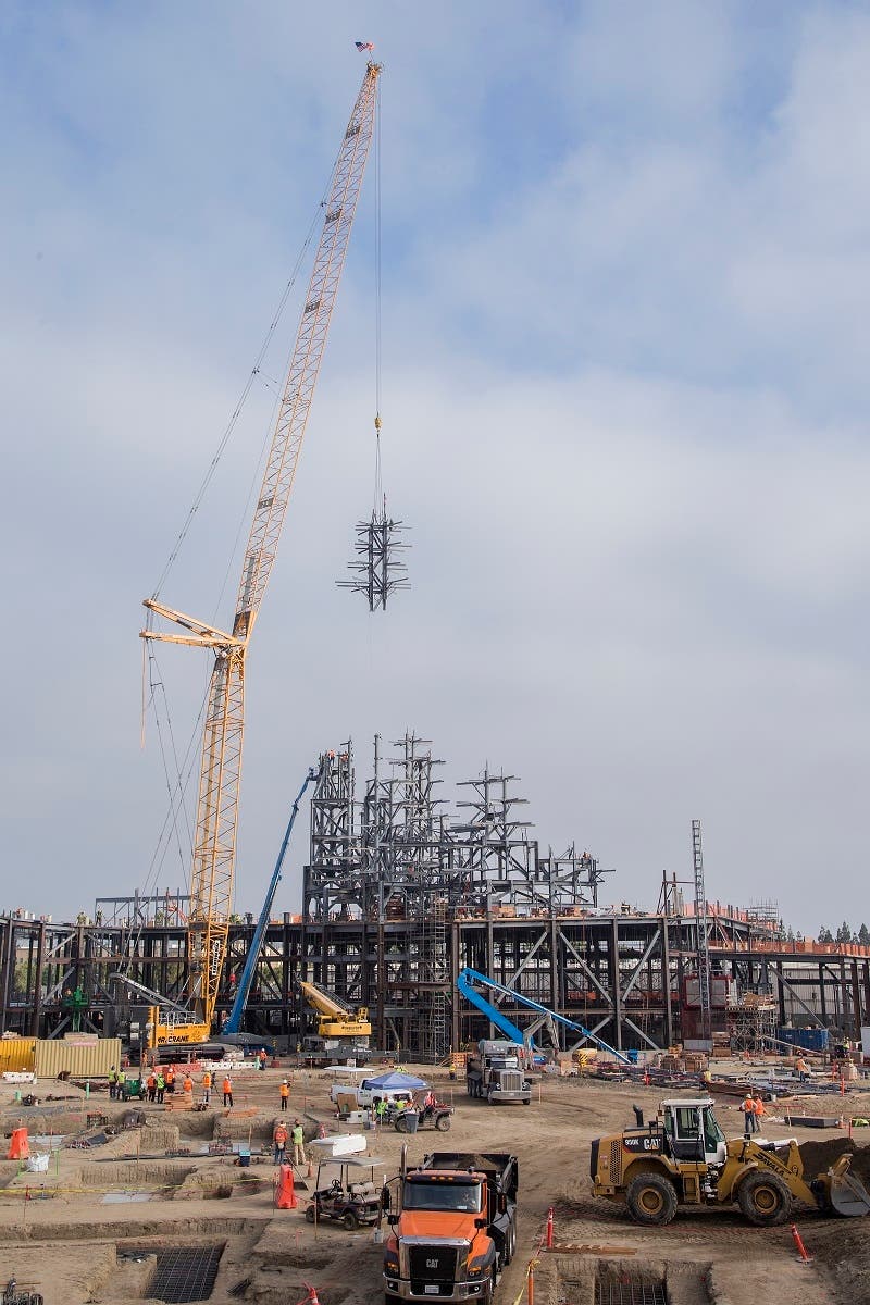 According to a resort spokesperson, construction teams have installed the highest steel beam for Star Wars: Galaxy’s Edge, the new Star Wars-themed land coming to Disneyland Resort in Anaheim with an expected opening date of 2019.