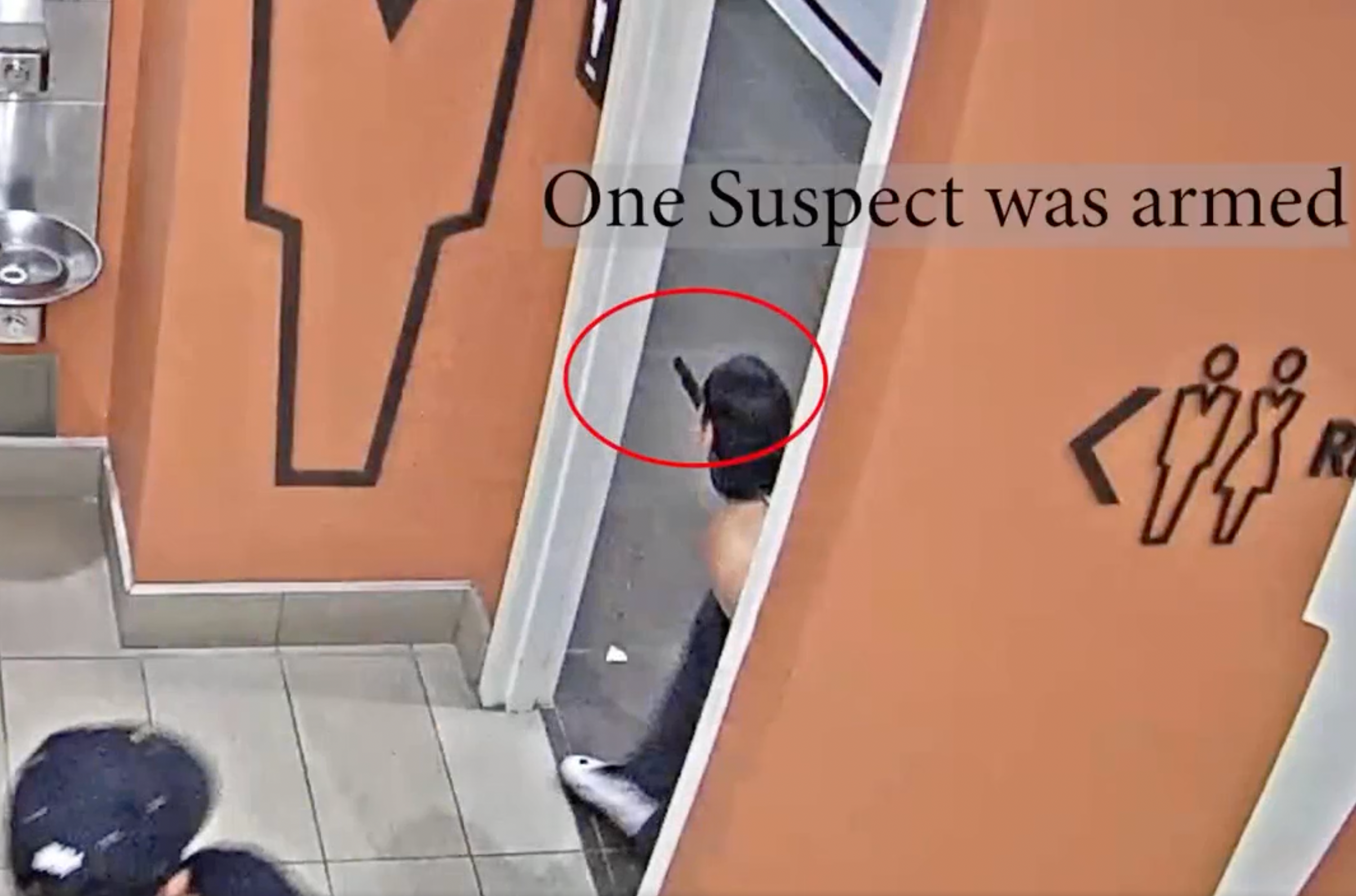 The first suspect was armed with a handgun, authorities said.