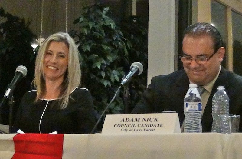 In addition to the early applause, Nick also seized upon the “Nick is Nuts” smear campaign against him during the recall. He said, “I am nuts. I’m nuts for Lake Forest. I’m nuts for the residents. I’m nuts for” this and that. He seemed to draw a gasp from some members of the crowd when he delivered his punch line: That Robinson had voted against those things that Nick was nuts for that had resonated with members of the audience.