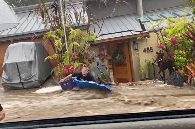 Meanwhile, this Laguna Beach homeowner did his best to keep the floodwaters at bay from his Locust Street home. With three more hours of rain to come and no sandbags in sight, it was a battle in futility.