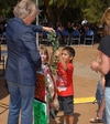 “What a wonderful concept – our older generation working with and teaching the youngest generation who are here at Cuyamaca College in our early-childhood program,” said Chancellor Cindy L. Miles, who joined President Mark J. Zacovic in holding the length of vine cut by East County Supervisor Dianne Jacob. “Not only do the generations interact, our youngest ones get to know about gardening and teamwork and about healthy eating. With today’s problems of childhood obesity and our kids not knowing where our foods come from – this is a very beautiful opportunity to address these issues.”