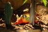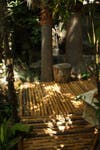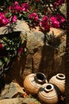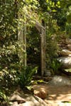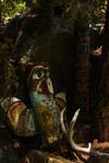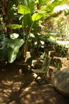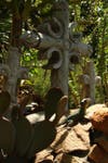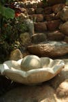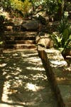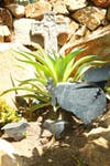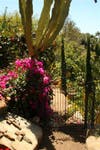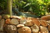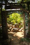 Bob Caparas has single-handedly built walls, bridges, trails, waterfalls, excavated soil and relocated boulders to create an eclectic landscape in their backyard on Mt. Helix. There is a tropical garden with bamboo and birds of paradise, Mayan & Aztec petroglyph hand-painted by Bob, a conifer forest with several different types of pines, Northwest coastal Indian totem poles, a small scale Stonehenge from rocks located on the property, cacti from Mexico with musical frogs, Corinthian columns and flagstone, a grotto and even an area for Buddha.