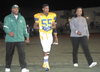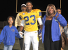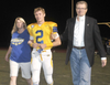 Family members of 31 Grossmont High School senior football players and nine cheerleaders escorted their stars onto the field Friday night before the showdown with visiting Helix Charter High School.