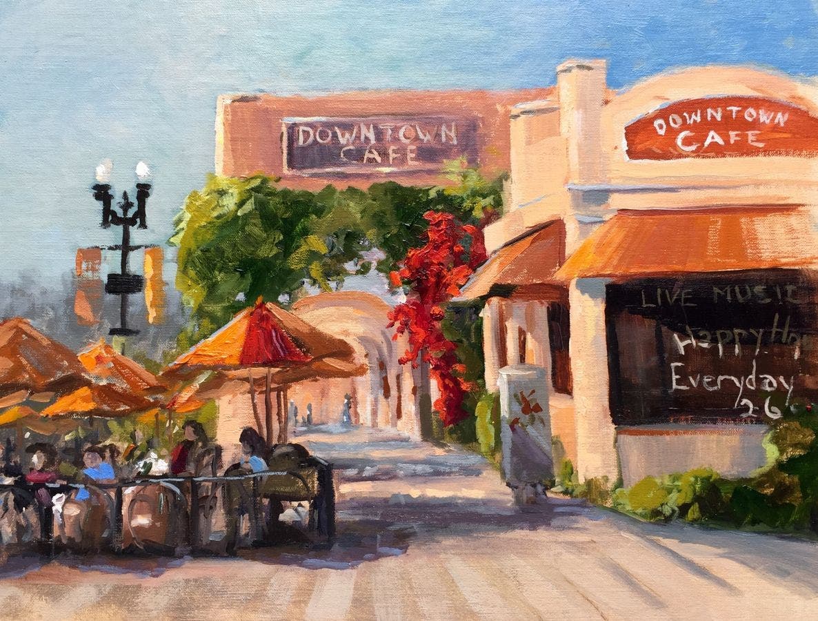 All paintings will be “plein air,” a term which means “open air” and referring to paintings created outside and on location to create the effects of light and atmosphere.