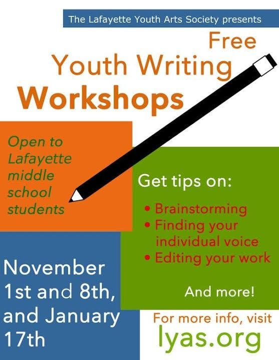 The Lafayette Youth Arts Society (www.lyas.org) will be holding a series of free writing workshops for middle school students in Lafayette. The workshops will be taught by St. Mary’s College graduate students in the English degree program.