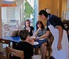 Gayle Jiminez and her two children, Bianca, 18, and Colson, 10, were among the first to enter Wednesday. Gayle and her husband Jonah are housed in temporary quarters across the street, looking at homes in Lamorinda. "It's down to Lafayette or Moraga," she said, quaffing a latte served in a large, handleless bowl, as is customary in Europe. After her latte, Lafayette may have a slight edge.