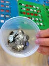 The fee is 10 cents for three Bingo cards, for each game played. During the last game of the day, they play a regular Bingo, then a picture frame, then continue to cover the entire board. Winners are rewarded with money collected from each game.