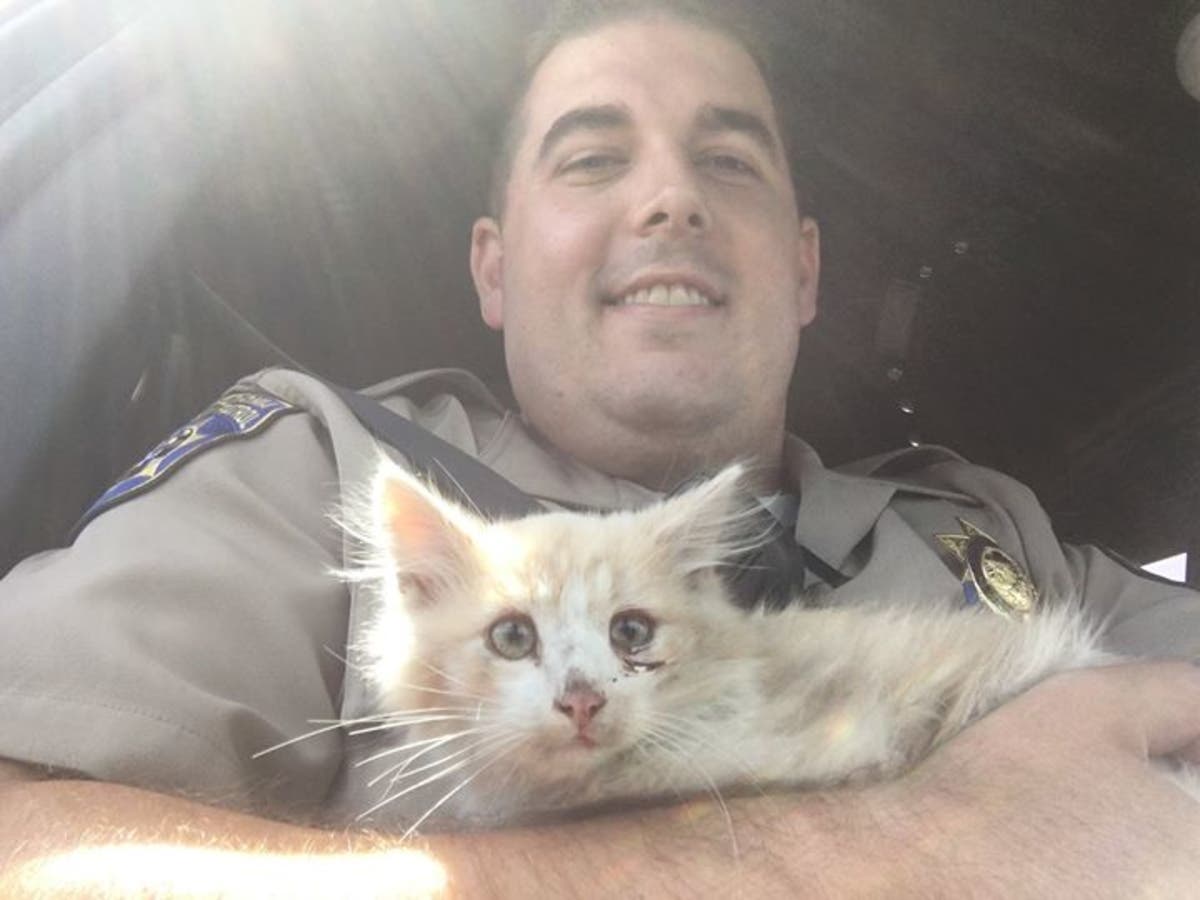 The kitten was taken to VCA Madera Pet Hospital in Corte Madera, where he was given an exam and a bath. Hospital staff – which gave officer Matt Smith and the kitten a goodie bag, medicine and pet carrier – refused payment for their services, according to the CHP.