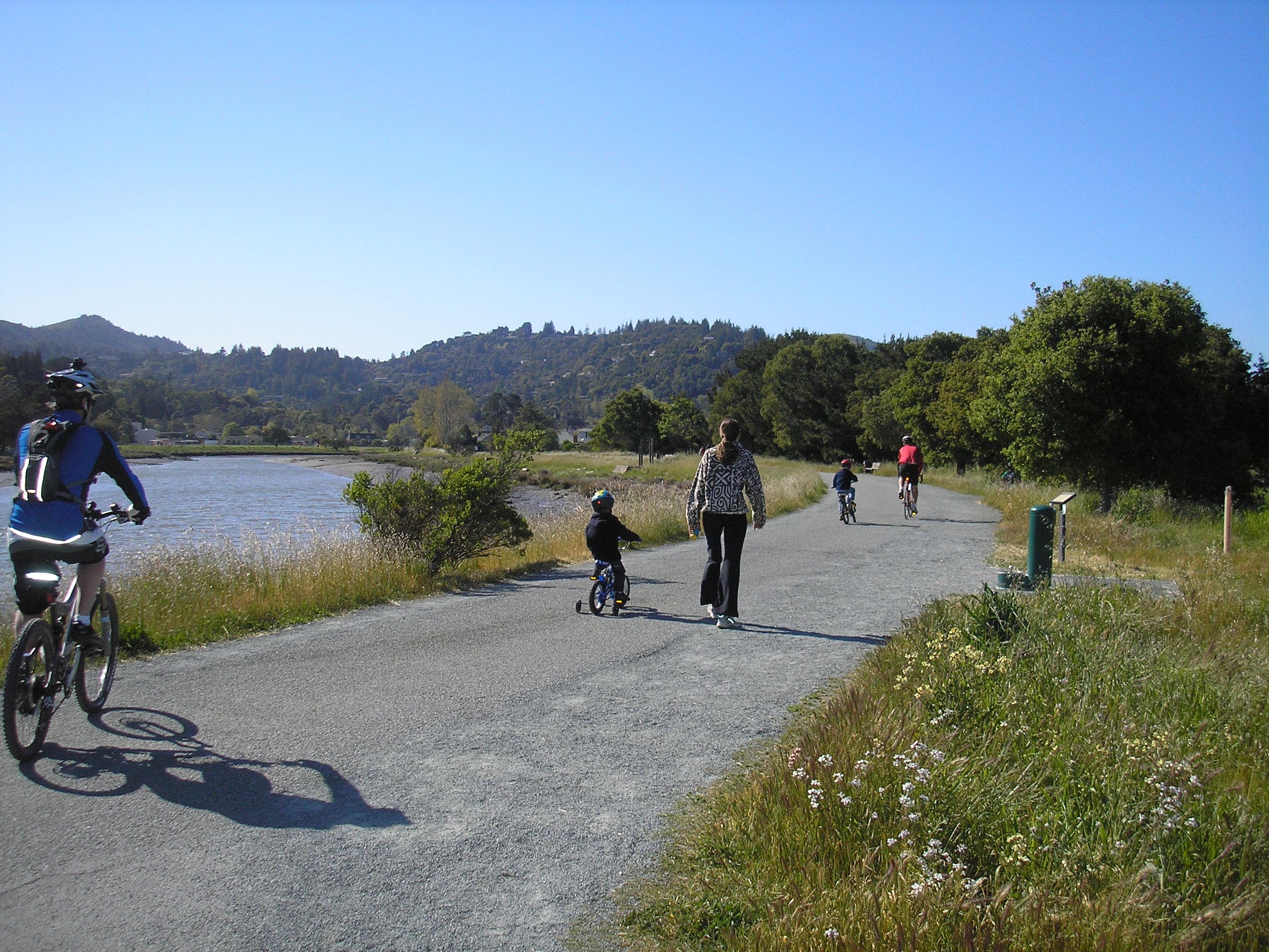 Walkers and cyclists enjoy a pathway in Corte Madera. CREDIT: Marin County Parks