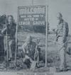 M.H. McCrary designed and painted the signs. A.E. Donnelly, the "Sewer King of Lemon Grove," cut, threaded and fitted pipes as standards to hold them up. Bob Johnson and Jackson Ammons found the sign locations. Ted Haaf, Forrest Baxter, R.H. Schnick, and A.P. Schnell installed them. Charles Baxter took the photos.