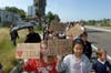 About 150 people lined the street on Lemon Grove Avenue, making their way along a one-mile route from the Lemon Grove Foursquare Church to the First Baptist Church of Lemon Grove.