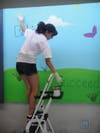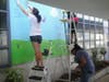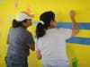 Karla Rios was among the volunteers who helped paint two new murals. One of the murals consists of a blue sky and green grass with the words “believe,” “succeed” and “achieve.” The other is a yellow background with multicolored handprints of the students and other volunteers. There are names of careers near the handprints on the mural, as well as the message, “You are the creator of your destiny.”