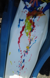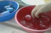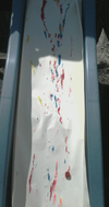 Yesterday Sophia froze paint with a little water in ice cube trays. Today the children painted with the paint ice cubes. They painted on paper, moving the paint cube all over as it melted. Then we covered our slide with paper and they slid the paint cubes down the slide. At the end, we took a long sheet of paper and tossed all the remaining paint cubes on the paper. As they played on the playground, they kept checking in to see how the melting paint cubes were doing! It is always interesting to me how some children do their art quickly and how others spend more time covering the entire paper. Giving them the time to enjoy the process is our goal, whether done quickly or more intently. www.MCHLG.com