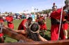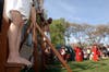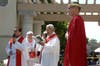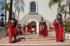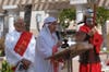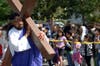 Parishioners stand along the Way of Sorrows, watching as Jesus walks the long path from condemnation to crucifixion. Whipped and stumbling, he shoulders a cross to the hill, where he takes his final breath.